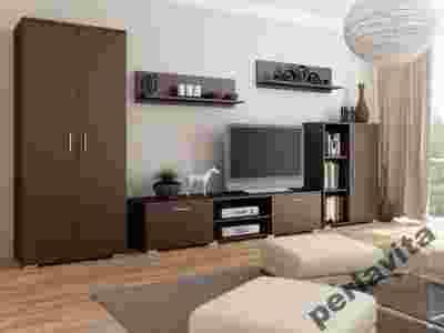 Meblościanka na wizualizacji jest w kolorze wenge.