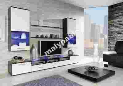 MEBLOŚCIANKA ''CAMA II'' WENGE/BIAŁY POŁYSK + LED!