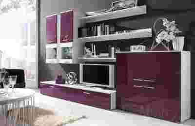 Nowoczesna meblościanka COMO II z oświetleniem LED, fiolet połysk