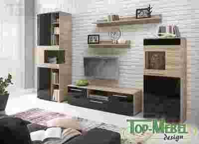 Meblościanka In Line to nowoczesne wzornictwo, a jednocześnie przemyślane rozwiązania dające swobodę w projektowaniu i urządzaniu wnętrz. Meblościanka In Line wykonana jest z najwyższej jakości płyt laminowanych. Korpus meblościanki to płyta laminowana w wybarwieniu dąb sonoma. Fronty tej meblościanki to wyważone połączenie wybarwienia dąb sonoma, które w swej formie oddaje w realistyczny sposób wrażenie naturalności drewna dzięki widocznym i wyczuwalnym usłojeniom oraz czarnego połysku. Czarny połysk to płyta POLYGLOSS dająca nowoczesny i designerski wysoki połysk. Płyta POLYGLOSS obok niesamowitego efektu wizualnego daje dodatkowo niesłychaną odporność na zarysowania i co bardzo ważne - wysoką odporność na wszelkiego rodzaju środki chemiczne.