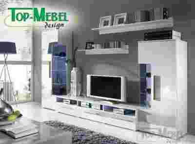 Nowoczesna meblościanka ROMA z frontami z wysokim połyskiem i oświetleniem LED. Meblościanka wykonana jest z wysokiej jakości płyty laminowanej. Korpus meblościanki to biała płyta o śnieżnobiałym kolorze. Fronty meblościanki wykonane są z nowoczesnej płyty POLYGLOSS dającej nowoczesny i designerski wysoki połysk. Płyta POLYGLOSS obok niesamowitego efektu wizualnego daje dodatkowo niesłychaną odporność na zarysowania i co bardzo ważne wysoką odporność na wszelkiego rodzaju środki chemiczne. Oświetlenie LED GRATIS !!! Meblościanka ROMA to najlepszy wybór dla osób preferujących nowoczesne i bardzo modne aranżacje wnętrz.