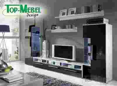 Nowoczesna meblościanka ROMA z frontami z wysokim połyskiem i oświetleniem LED. Meblościanka wykonana jest z wysokiej jakości płyty laminowanej. Korpus meblościanki to biała płyta o śnieżnobiałym kolorze. Fronty meblościanki wykonane są z nowoczesnej płyty POLYGLOSS dającej nowoczesny i designerski wysoki połysk. Płyta POLYGLOSS obok niesamowitego efektu wizualnego daje dodatkowo niesłychaną odporność na zarysowania i co bardzo ważne wysoką odporność na wszelkiego rodzaju środki chemiczne. Oświetlenie LED GRATIS !!! Meblościanka ROMA to najlepszy wybór dla osób preferujących nowoczesne i bardzo modne aranżacje wnętrz.