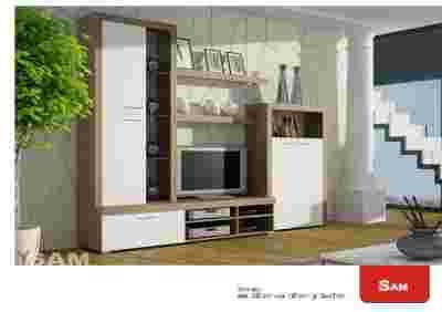 Meblościanka SAM - w kolorze dąb sonoma + biały z LED w 3 pkt.