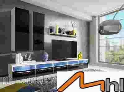 MEBLOŚCIANKA TOLEDO CZARNY POŁYSK z LED GRATIS!