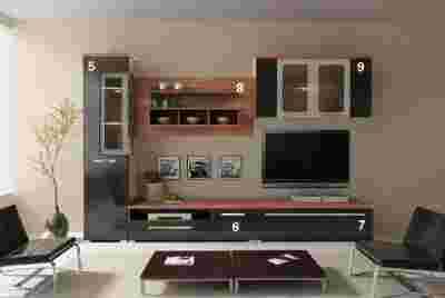 W skład meblościanki wchodzą elementy 5, 6, 7, 8 i 9 (bez elementów dekoracyjnych)