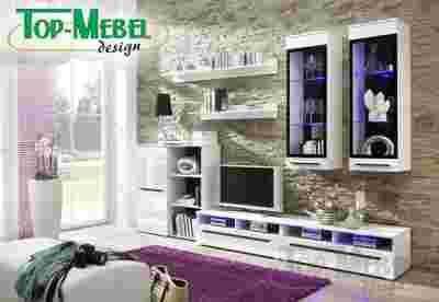 Nowoczesna meblościanka VERONA I z frontami z wysokim połyskiem i oświetleniem LED. Meblościanka wykonana jest z wysokiej jakości płyty laminowanej. Korpus meblościanki to biała płyta o śnieżnobiałym kolorze. Fronty meblościanki wykonane są z nowoczesnej płyty POLYGLOSS dającej nowoczesny i designerski wysoki połysk. Płyta POLYGLOSS obok niesamowitego efektu wizualnego daje dodatkowo niesłychaną odporność na zarysowania i co bardzo ważne wysoką odporność na wszelkiego rodzaju środki chemiczne. Oświetlenie LED GRATIS !!! Meblościanka VERONA I to najlepszy wybór dla osób preferujących nowoczesne i bardzo modne aranżacje wnętrz.