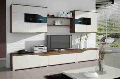 Meblościanka Whale II - w kolorze jesion Coimbra + biały połysk ! Półki podświetlane lampkami LED!