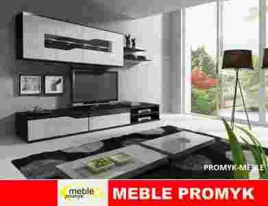 Meblościanka wykonana z płyty laminowanej czarnej,fronty z płyty wiórowej lakierowanej na biało wysoki połysk