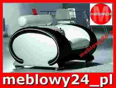 Modernistyczne wyzwanie dla naprawdę odważnych. Opływowe kształty, w które po mistrzowsku wkomponowano ozdobne elementy aluminium. Zestaw , na który składa się trzyosobowa kanapa i dwa fotele, doskonale nadaje się do nowocześnie urządzonych salonów i pokojów młodzieżowych. Głębokie siedzisko, wygodne oparcie i zagłówki umożliwiają optymalny relaks i wypoczynek. Calość opiera się na subtelnych, chromowanych nogach.