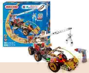MultiModels Meccano to konstruowanie modeli z metalowych cześci, śrubek, nakrętek, wsporników stalowych, blach, kół, dźwigarów.