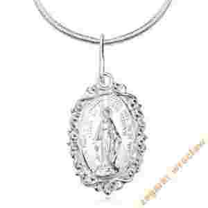 Srebrna zawieszka w kształcie medalika. Prezentowany model wykonany z diamentowanego srebra próby 925.