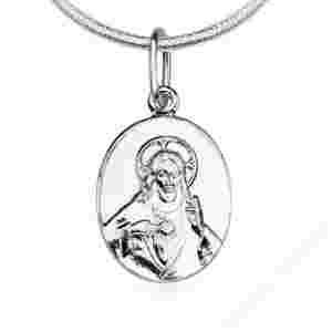 Srebrna zawieszka w kształcie medalika. Prezentowany model wykonany z diamentowanego srebra próby 925.