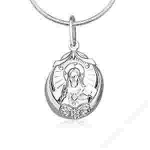 Srebrna zawieszka w kształcie medalika. Prezentowany model wykonany z diamentowanego srebra próby 925.