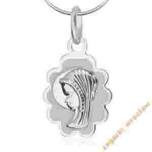 Srebrna zawieszka w kształcie medalika. Prezentowany model wykonany z diamentowanego srebra próby 925.
