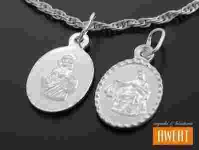 Medalik srebrny dwustronny Serce Jezusa Szkaplerz