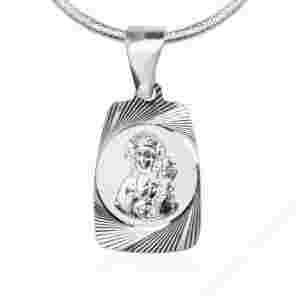 Srebrna zawieszka w kształcie medalika.Prezentowany model wykonany z diamentowanego srebra próby 925.