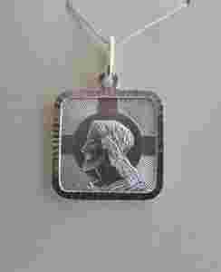 Srebrna zawieszka w kształcie medalika.Prezentowany model wykonany z diamentowanego srebra próby 925.