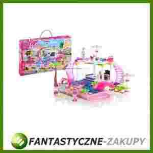 Pływaj i nurkuj! Zorganizuj przyjęcie na basenie! To jak Barbie i jej przyjaciele spędzą czas zależy tylko od Ciebie. Zbuduj olśniewającą „oazę” z brokatowa zjeżdżalnią, która prowadzi wprost do dwupoziomowego basenu, do którego może naprawdę nalać wody. Barbie wraz z tobą, jest doskonało organizatorką przyjęć. Załóż jej różowy strój kąpielowy lub piękną sukienkę. Kidy Ken będzie przygotowywał przekąski, Barbie zacznie witać pierwszych przybywających gości Główne cechy: Do zbudowania, dwupoziomowy basen, który można wypełnić wodą Akcesoria: parasole, kwiaty, palmy, i wiele innych, aby móc się cieszyć zabawą i zrelaksować w dobrym stylu Nieograniczone możliwości projektowania i dekoracji W zestawie figurka Barbie i Kena. Dla Barbie strój kąpielowy i spódnica, a także Ken Naklejki do dekoracji w zestawie Połącz ze innymi zestawami Mega Bloks Barbie, aby zbudować wspaniały świat mody, przyjaciół i baw się wspaniale! Zestaw zawiera 129 elementów – klocki mikro. Zestaw idealny dla dziewczynek w wieku 4