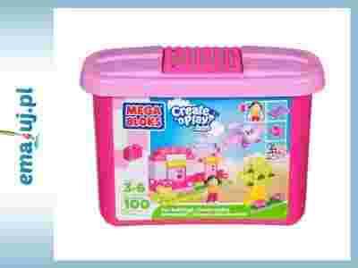 Zestaw klocków Mega Bloks w rozmiarze Mini, zawiera 100 klocków w tym wiele elementów specjalnych takich jak koła, postacie, etc. Klocki zapakowane są estetyczne, pratktyczne i trawałe pudełko z plastiku, gdzie górna część zawiera platformę do budowania. Ten zestaw, ze względu na tematykę i kolorystykę elementów, szczególnie polecany jest dla dziewczynek.Klocki pozwalają pobudzać wyobraźnię i rozwijać kreatywność. Klocki wykonane są w najwyższej jakości. Producent, Kanadyjska firma Mega Brands, to jeden z dwóch najbardziej uznanych producentów klocków na świecie.Klocki Mega Bloks Mini z serii Create 'n Play Junior są kompatybilne z innymi podobnymi zestawami dostępnymi na rynku, np. Lego Duplo.Grupa wiekowa: 3 - 5 lat