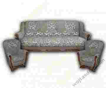 Nowy, wygodny komplet wypoczynkowy w skład którego wchodzi rozkładana wersalka z pojemnikiem na pościel oraz dwa fotele.