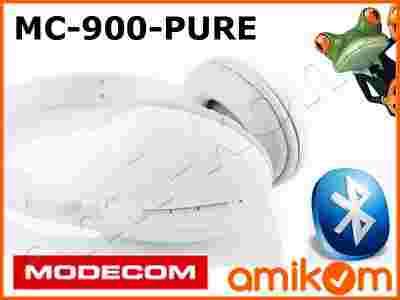 MODECOM MC-900B PURE to wysokiej jakości bezprzewodowe słuchawki dzięki którym możliwe jest w pełni swobodne słuchanie muzyki, czy rozmowa przez telefon komórkowy. Prezentowany przez nas zestaw słuchawkowy działa w oparciu o technologię Bluetooth®, co oprócz tego, że daje użytkownikowi nieograniczone możliwości działania to również sprawia, że przesyłany za pomocą tej technologii dźwięk jest niezakłócony innymi sprzętami, jak to bywa w przypadku tradycyjnej technologii radiowej.