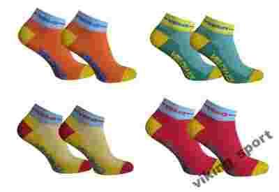 Skarpety wykonane są z bardzo dobrego materiału oddychającego. Dobrze prezentują się na stopach i są wytrzymałe. Skarpeta posiada cienką siatkę o specjalnej konstrukcji z dużą ilością oczek, która tworzy kanaliki powietrza dla lepszej wentylacji stopy. Siatka znajduje się na całej cholewce, podbiciu, oraz na spodniej części stopy i jest specjalnie anatomicznie wyprofilowana do linii stopy, aby maksymalnie zwiększyć powierzchnie wentylowania. Nad piętą jest wzmocnienie zapobiegające przetarciom przez cholewkę buta. Pięta i palce wzmocnione włóknem polipropylenowym, płaski szew, podwójny ściągacz.