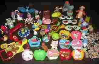 Przedmiotem aukcji jest duży zestaw zabawek, figurek i gadżetów z różnych bajek, m.in. : Noddy, Pingwiny z Madagaskaru, Toy Story, Scooby Doo, Kot w butach, Hello Kitty, Smerfy, Kubuś Puchatek i inne. Są to różne zabawki ruchome, z dźwiękiem, nowe magnesy, zabawne okulary, zawieszki-maskotki itd. Zestaw w stanie bdb.