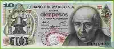 MEKSYK 10 Pesos 1974 P63g UNC CT