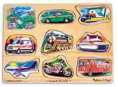 MELISSA DOUG DREWNIANE PUZZLE DŹWIĘKOWE POJAZDY