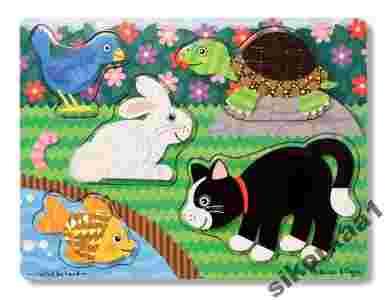 Melissa and Doug Dotknij i poczuj zwierzęta domowe – drewniane puzzle o różnej teksturze (4326)