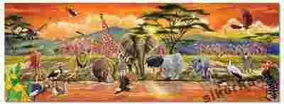 Na Sawannie życie toczy się wokół wodopoju. Gdy złożysz te specjalnie pogrubione 100-elementówe puzzle, Twoim oczom ukaże się przepiękna scena na której rozpoznasz wszystkie najbardziej znane zwierzęta Afryki. Po złożeniu puzzle mają długość ponad 1 m i 20 cm i są wykonane z bardzo wytrzymałej, specjalnie pogrubionej tektury. Łatwe w czyszczeniu.