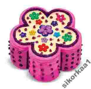 Mnóstwo zabawy czeka na młodego twórcę wraz z tym kwiatowym zestawem. W zestawie wspaniałe, drewniane pudełeczko w kształcie kwiatu w rozkwicie, klejnotów, klej brokatowy, cztery pojemniczki z farbkami, i różowy pędzel. Rozmiar zestawu w opakowaniu: 13 x 18 x 4.5 w cm Zabawka rekomendowana dla dzieci powyżej 4 roku życia. Zawiera drobne elementy