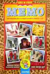 "Memo" to polska wersja wspaniałej gry znanej pod różnymi nazwami na całym świecie. Tym razem ilustrowana pięknymi zdjęciami zwierząt z całego świata, a ponadto - po raz pierwszy - jej nowa, dynamiczna wersja - "Klepak". Grać w zwierzaki może każdy: od pradziadka do prawnuka. Wszystkich trzyma w napięciu. Uwaga dorośli: najmłodsi zwykle wygrywają! Gra świetnie ćwiczy pamięć, spostrzegawczość zdolność koncentracji. Zasady są najprostsze z możliwych. Kartoniki rozkładamy na stole obrazkami do dołu. Gracze kolejno odwracają po dwa i kompletują pary. Kto zbierze najwięcej - wygrywa.