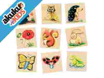 Gra memo z 32 klockami przedstawiającymi zwierzęta i rośliny żyjące w ogrodzie. Gracze rozkładają wszystkie klocki obrazkami do dołu. Następnie kolejno odkrywają po 2 klocki, które, jeśli tworzą parę, zabierają i kładą obok siebie. Odkrywając 2 różne klocki odkładają je na swoje miejsca obrazkami do dołu. Należy zapamiętać, w którym miejscu leżą odkryte wcześniej klocki. Wygrywa ten, kto zgromadzi więcej par. Po zakończonej grze klocki można schować do sztywnego, tekturowego pudełka.
