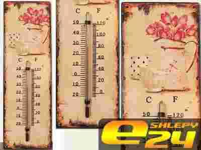 Metal Stylowy TERMOMETR 25x8cm KWIATY Retro