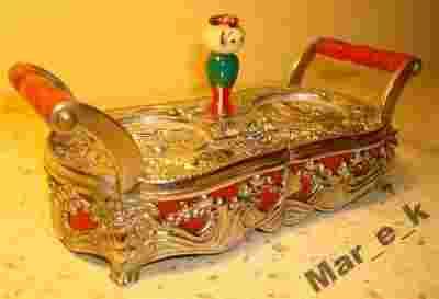 METALOWA ZDOBIONA PODSTAWKA W STYLU WSCHODNIM Z JAPOŃSKĄ MECHANICZNĄ POZYTYWKĄ OKAZJA