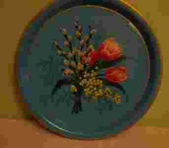 METALOWA TACA Z CZASÓW PRL KWIATY