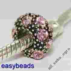 Metalowy KORALIK MODULOWY ROZOWE KAMIENIE M77