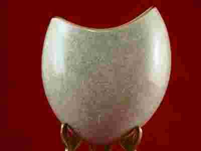 Wazonik wykonany z grubościennej porcelany o ponadczasowym, biomorficznym kształcie.Głównym motywem zdobniczym jest specjalnie wytworzona krakelura o zielonym zabarwieniu.Obrzeże górnej krawędzi podkreślono złotem.