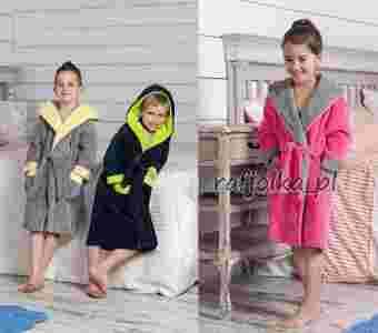 Dziecięcy szlafrok z kapturem wykonany z mięciutkiej dzianiny.