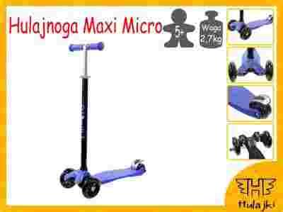 Maxi Micro to większa wersja najpopularniejsza na świecie hulajnogi dla dzieci (Mini Micro). Tak samo jak jej poprzedniczka Maxi Micro wyróżnia się precyzją i jakością wykonania (wyprodukowano ją w Niemczech). Dzięki nietypowej konstrukcji (dwóch kółkach z przodu i jednemu z tyłu) oraz unikalnemu mechanizmowi sterowania jest wyjątkowo stabilna i łatwo się nią kieruje. Maxi Micro idealnie sprawdza się jako środek transport do szkoły, przedszkola czy na plac zabaw.