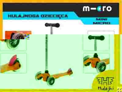 Mini Micro to najpopularniejsza na świecie hulajnoga dla dzieci. Precyzja i jakość wykonania sprawiają, że bezpiecznie mogą na niej jeździć już półtoraroczne szkraby. Dzięki nietypowej konstrukcji (dwóch kółkach z przodu i jednemu z tyłu) oraz unikalnemu mechanizmowi sterowania hulajnogą nawet tak małe dziecko szybko nauczy się jeździć, skręcać i hamować. Co jeszcze przemawia za Mini Micro? Hulajnoga została wyprodukowana w Niemczech (a nie jak inne tego typu produkty w Chinach), jest bardzo lekka (1,5 kg) i praktycznie niezniszczalna:).