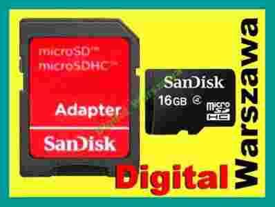 Nowa - fabrycznie zapakowana karta mircoSDHC o pojemności 16 GB firmy SanDisk + adapter do formatu SD. Legalna karta od polskiego dystrybutora. Na wszystkie zakupione u nas towary wystawiamy paragony fiskalne lub faktury VAT (na życzenie).