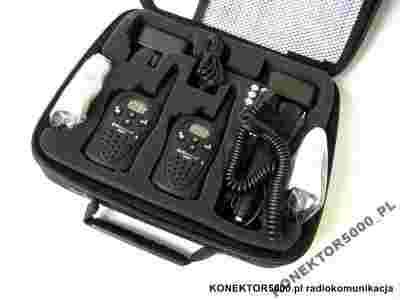 2szt. radiotelefonów G5 XT, 2 mikrofonosłuchawki, 2 ładowarki sieciowe, 2 adaptery samochodowe oraz solidna walizka w zestawie.
