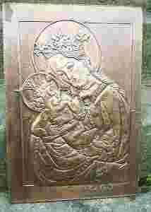 MIEDZIANY OBRAZ MATKA BOSKA Z DZIECIĄTKIEM .