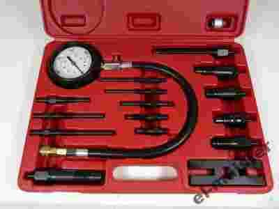 Konstrukcja: materiał stal C45, powierzchnia czarna, oksydowana . Zestaw zawiera miernik ciśnienia do 70 BAR (1000 PSI) z przewodem, szybkozłączem i zaworem zwalniającym, 4 adaptery montowane w miejscu wtryskiwacza, 9 adapterów montowanych w miejscu świecy żarowej, jeden adapter uniwersalny oraz mocowanie typ H dzięki czemu pasuje do większości marek samochodów: