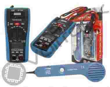 Oferujemy Państwu miernik cyfrowy z sondą indukcyjną (szukacz par przewodów) renomowanej firmy CEM (LA-1014). Wbudowany diodowy tester stanu lini telefonicznej: WOLNA (zielony), ZAJĘTA (brak sygnalizacji), DZWONEK (sygnalizacja żółtym miganiem). Nadajnik wyposażony jest w 2 rodzaje złącz: wtyk RJ-11 oraz dwa krokodylki. Odbiornik wyposażony jest w gniazdo słuchawkowe do pracy z zestawem nagłownym (np. w pomieszczeniach o dużym poziomie hałasu). Miernik realizuje pomiary napięć stałych/zmiennych, prądów stałych/zmiennych, oporu, test obwodu i test diody oraz wskazanie MIN/MAX. Posiada funkcje auto power OFF.