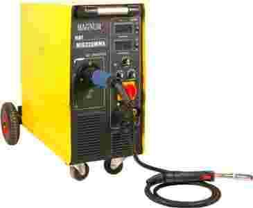 Przedmiotem sprzedaży jest urządzenie inwerterowe MIG 220 IGBT + MMA, profesjonalny półautomat spawalniczy z możliwością spawania elektrodami otulonymi, przeznaczony do spawania stali niskowęglowych, niskostopowych, stali stopowych, aluminium i jego stopów. Urządzenie znajduje zastosowanie w ciężkich warunkach produkcyjnych przemysłowych jak i w warsztatach naprawczych. Urządzenie posiada płynną regulację parametrów spawania, możliwośc zmiany biegunowości/ pozwala na używanie samoosłonowych drutów spawalniczych/ oraz trybu pracy 2T/4T. Migomat wyposażony jest w podajnik cztero-rolkowy typu 4X4, przeciążeniowy układ zabezpieczenia termicznego zapobiegający nadmiernemu nagrzewaniu się urządzenia. Żródło prądu zastosowane w urządzeniu zostało zbudowane na tranzystorach typu IGBT zapewniających minimum zakłóceń elektromagnetycznych, małe straty mocy w układach podstawowych, umożliwiające zwiększenie wydajności i niezawodności żródła prądu. Bardzo wysoka wydajnośc, przekładająca się bezpośrednio na mniejsze zużycie energii oraz wysoka częstotliwośc przełączania,zapewniaja błyskawiczne dostosowanie prądu do zmian parametrów w czasie spawania. Urządzenie wytwarzane jest zgodnie z najbardziej wymagającymi standardami, co zapewnia mu znakomite parametry spawalnicze.