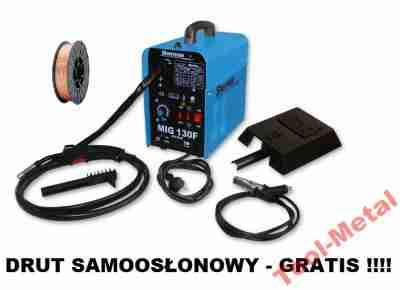 Transformatorowa spawarka półautomatyczna MIG 130F przeznaczona jest wyłącznie do bezgazowego spawania stalowym proszkowym drutem samoosłonowym.