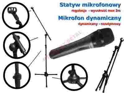 mikrofon dynamiczny neodymowy - wokal + statyw